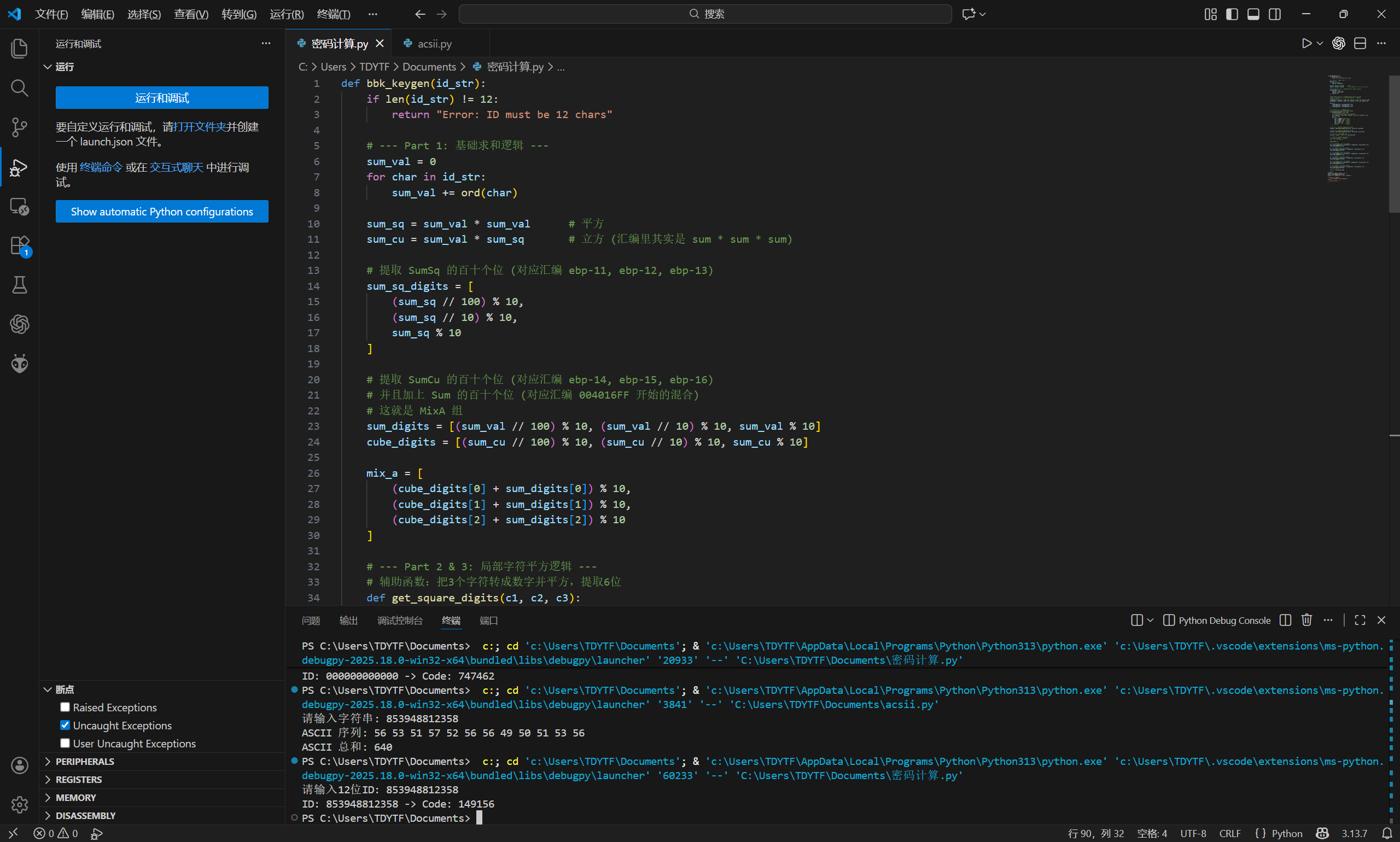 - 将输入 ID 的 12 个字符的 ASCII 码值相加。